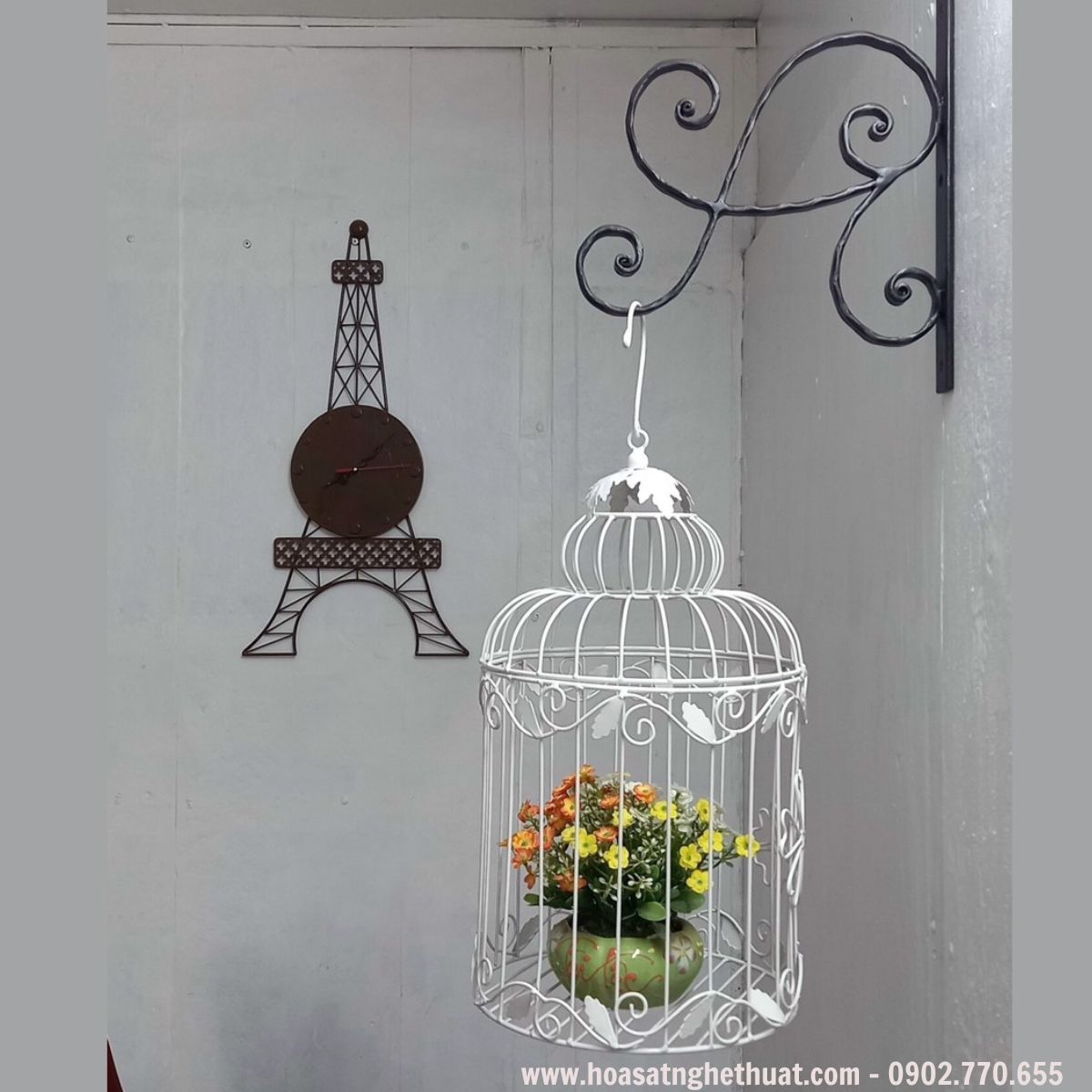 Chất liệu : Sắt uốn và phụ kiện hoa lá dập
