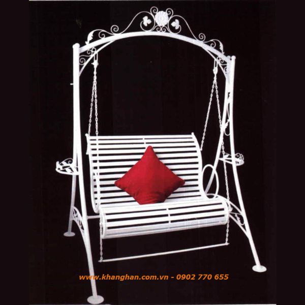 Với thiết kế đơn giản,thanh mảnh,tông màu trắng đục sang trọng. Chiếc xích đu sắt nghệ thuật chắc chắn sẽ làm sinh động cho bất kỳ không gian sân vườn nào.
