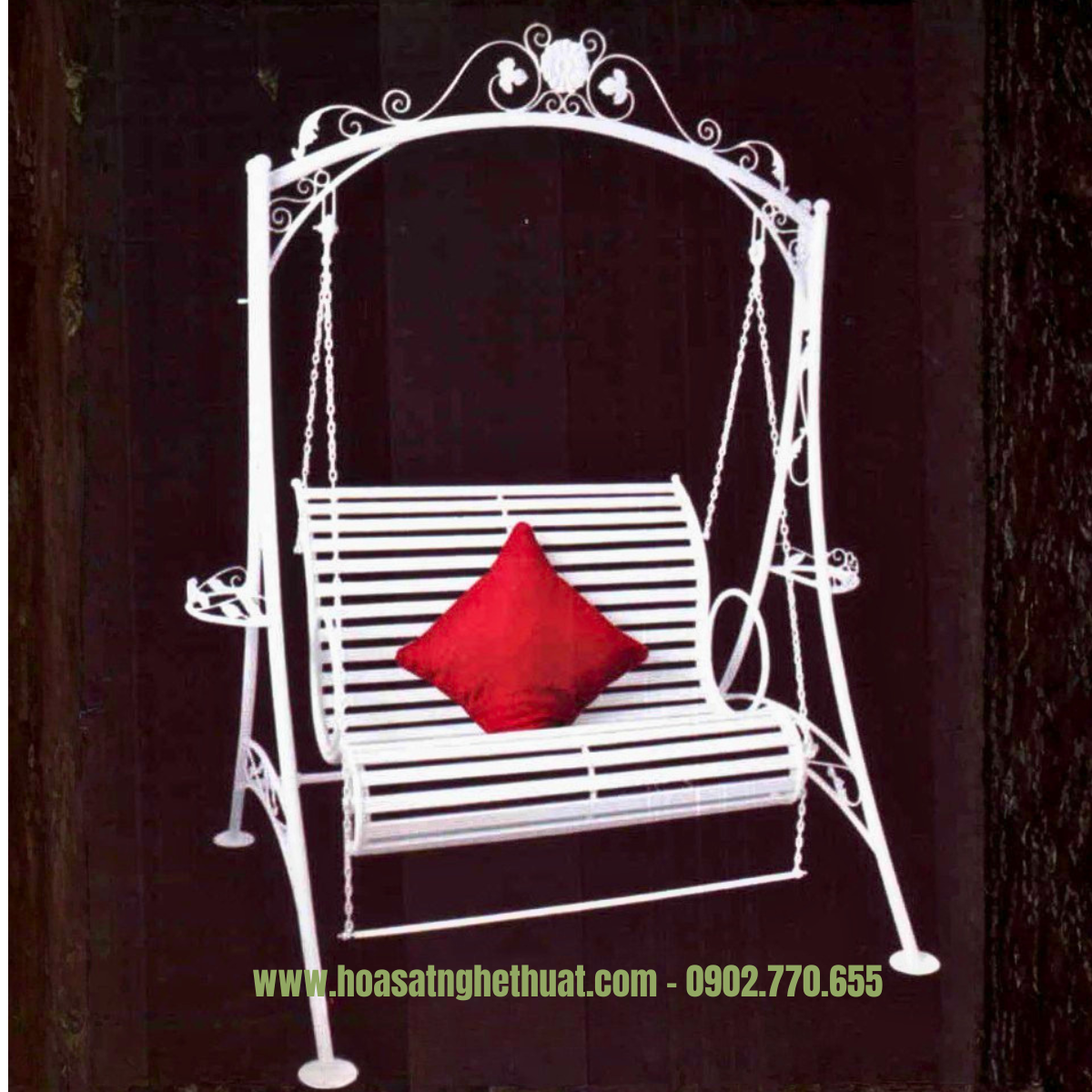 Ghế xích đu sắt mỹ thuật làm từ sắt đặc, uốn hoa văn thủ công.