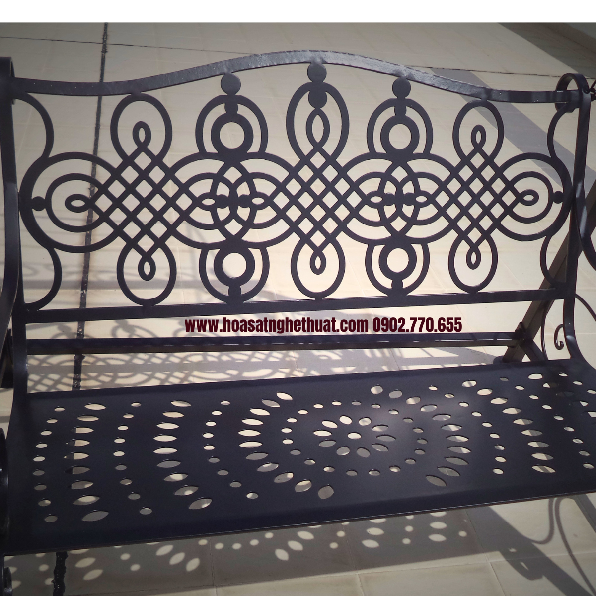 Ghế xích đu sắt rèn mỹ thuật là họa tiết hoa văn cắt CNC độc đáo cả lưng ghế và mặt ghế mang đến cái nhìn mới lạ hơn, thích thú hơn cho bạn.