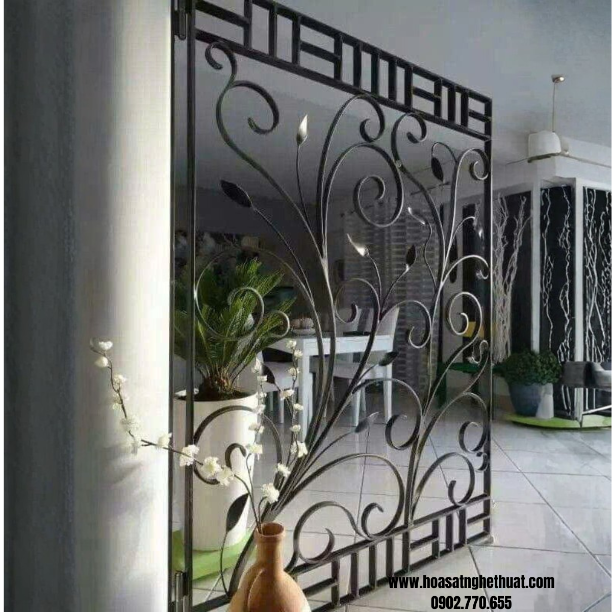 Trong nhiều trường hợp, khung trrang trí sắt rèn còn được xem như một “lá chắn phong thủy”, giúp che đi những khuyết điểm của ngôi nhà như khoảng trống, góc khuyết hay những vị trí chưa hài hòa về bố cục. Khi được bố trí đúng chỗ, nó vừa tôn lên giá trị thẩm mỹ của không gian, vừa góp phần dẫn dắt dòng khí lưu thông nhẹ nhàng, mang lại cảm giác an yên và vượng khí cho gia chủ.